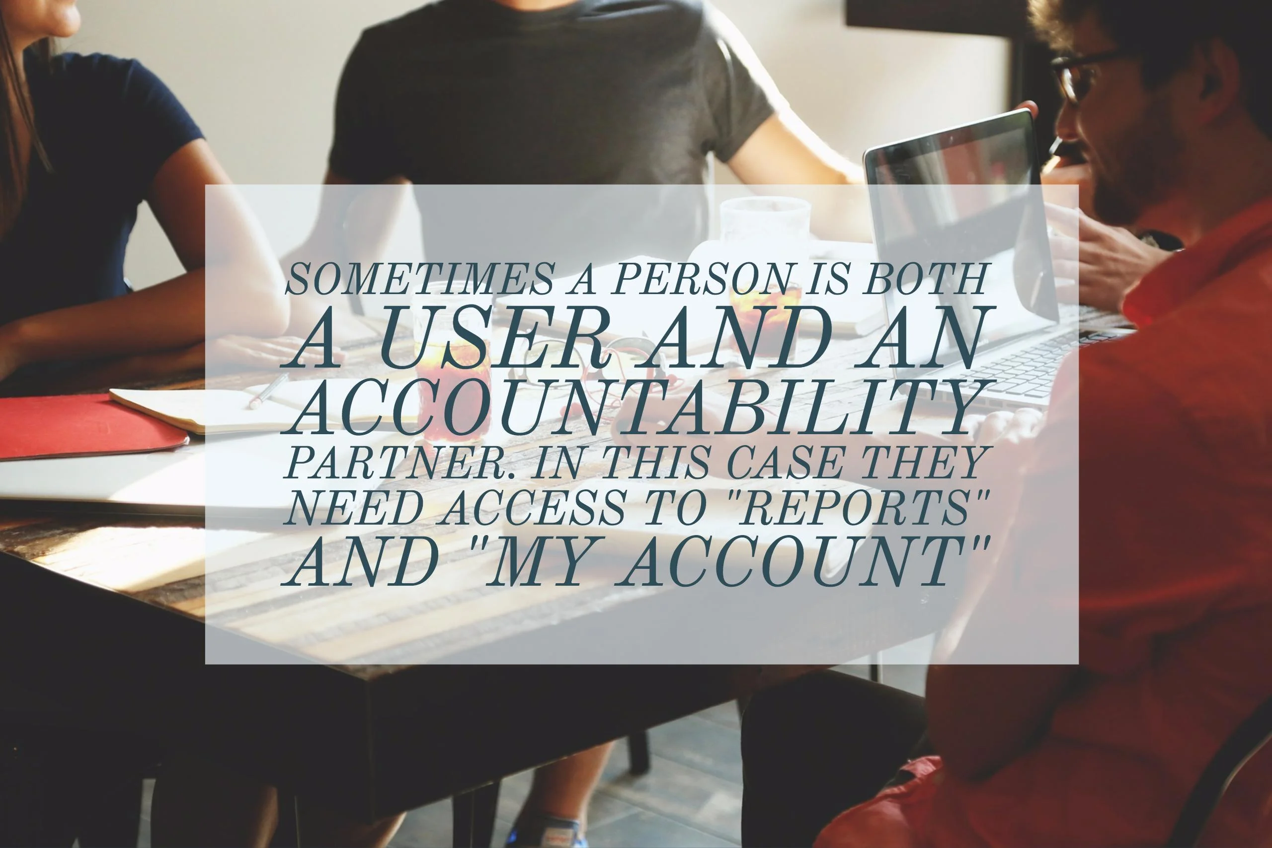 Typically, a user does not view their own reports and accountability partners do not have access to a user’s account. BUT, sometimes, a person is both a user and an accountability partner for someone close to them like their teenage son, their wife, a friend from church, or work colleague. In this case, they need access to both their account and another person’s reports (not their own).